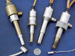 Разрабатываемые в лаборатории одновитковые вихретоковые датчики (ОВТД) уникальны по своих характеристикам и зачастую не имеют российских и зарубежных аналогов. По назначению их можно разделить на две основные группы - датчики для бесконтактного измерения смещений элементов конструкции силовых установок (радиальных зазоров в компрессорах и турбинах ГТД, осевых смещений валов в опорных подшипниках и т.д.) на различных режимах работы и датчики для измерения механических параметров (абсолютных угловых перемещений и измерители крутящего момента). |